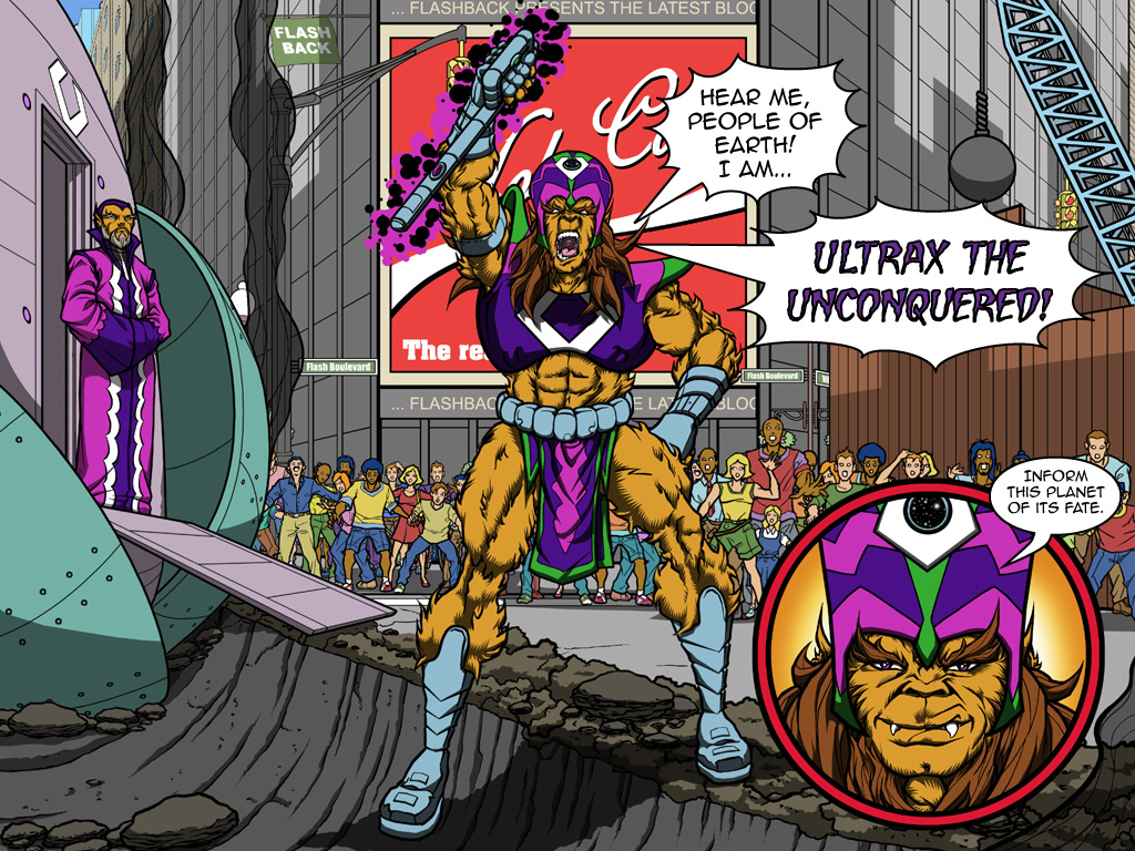 All Flashback Universe content Copyright Jim Shelley and Pierre Villeneuve except for Mr Crimson which is copyrighted to Seth Sherwood and Diego Tripodi |