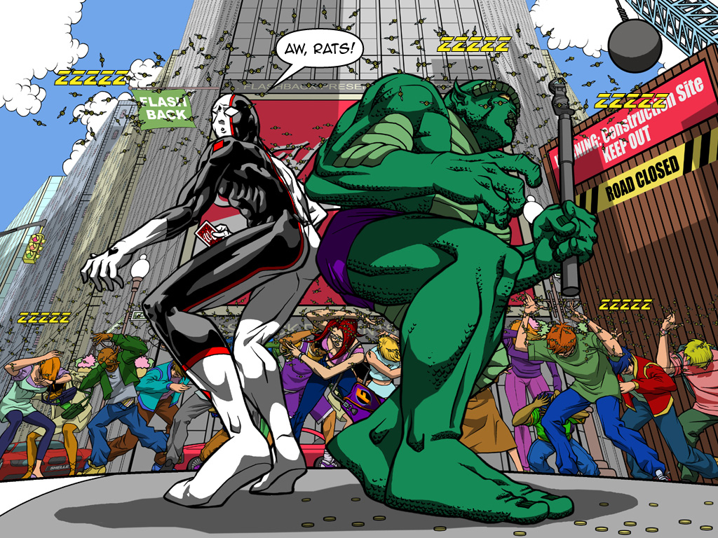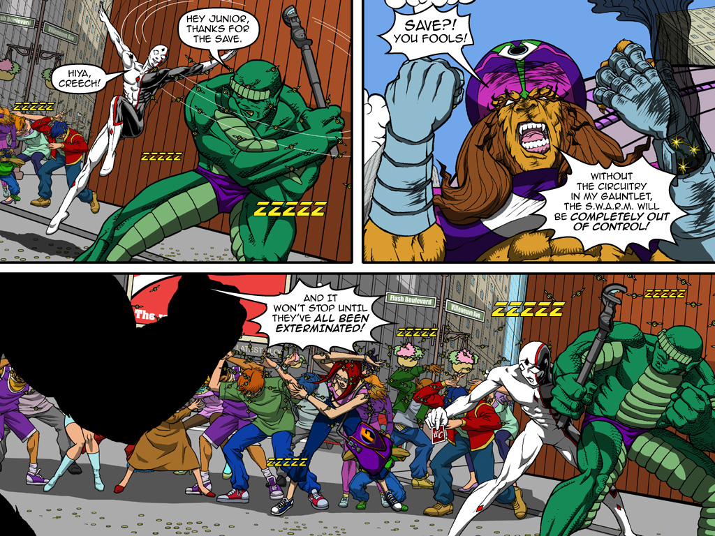 Blog | WebComics | Downloads | Chraracters | Flashback Team Up | STORY: Chris Sims | ART: Jerry Hinds |