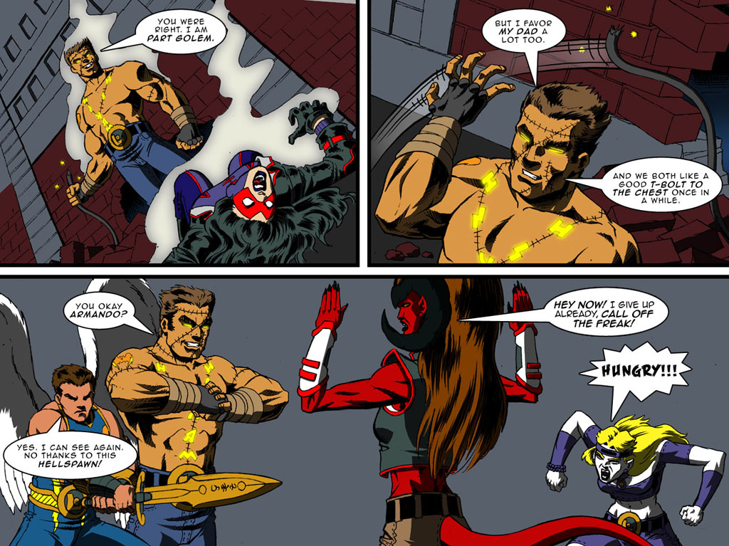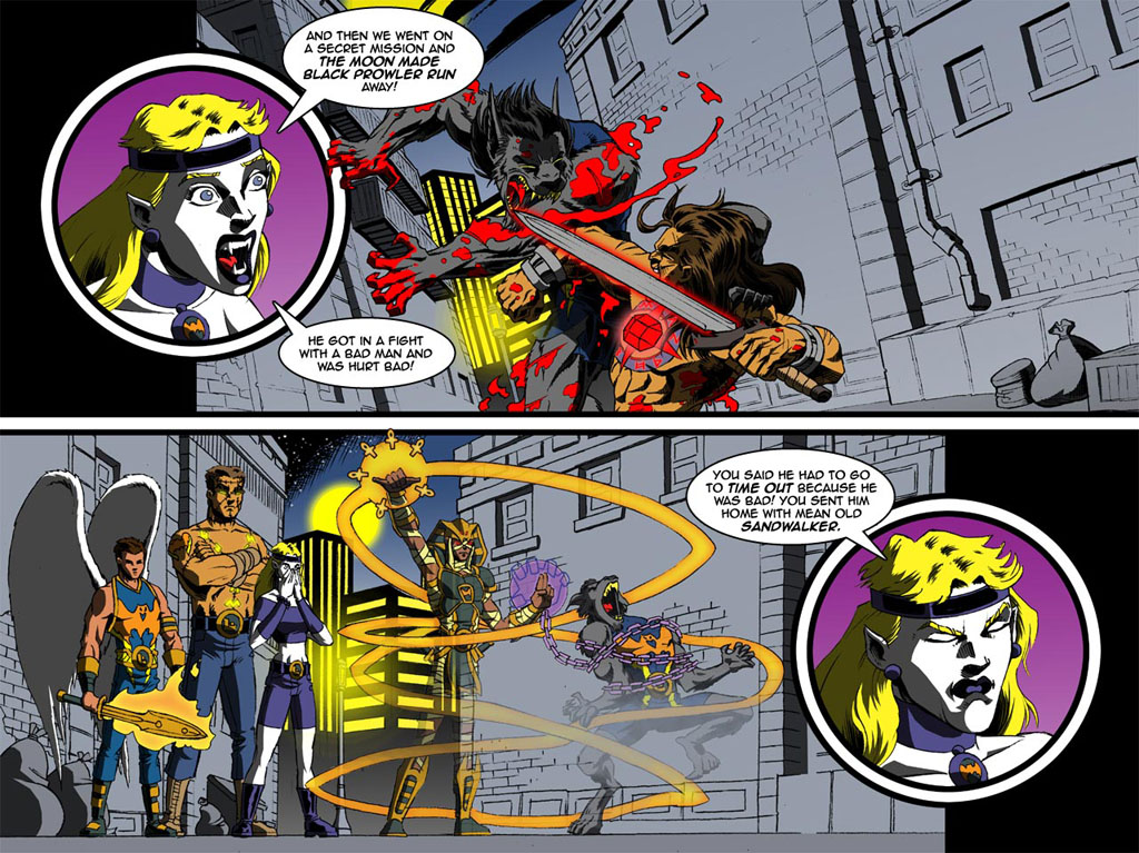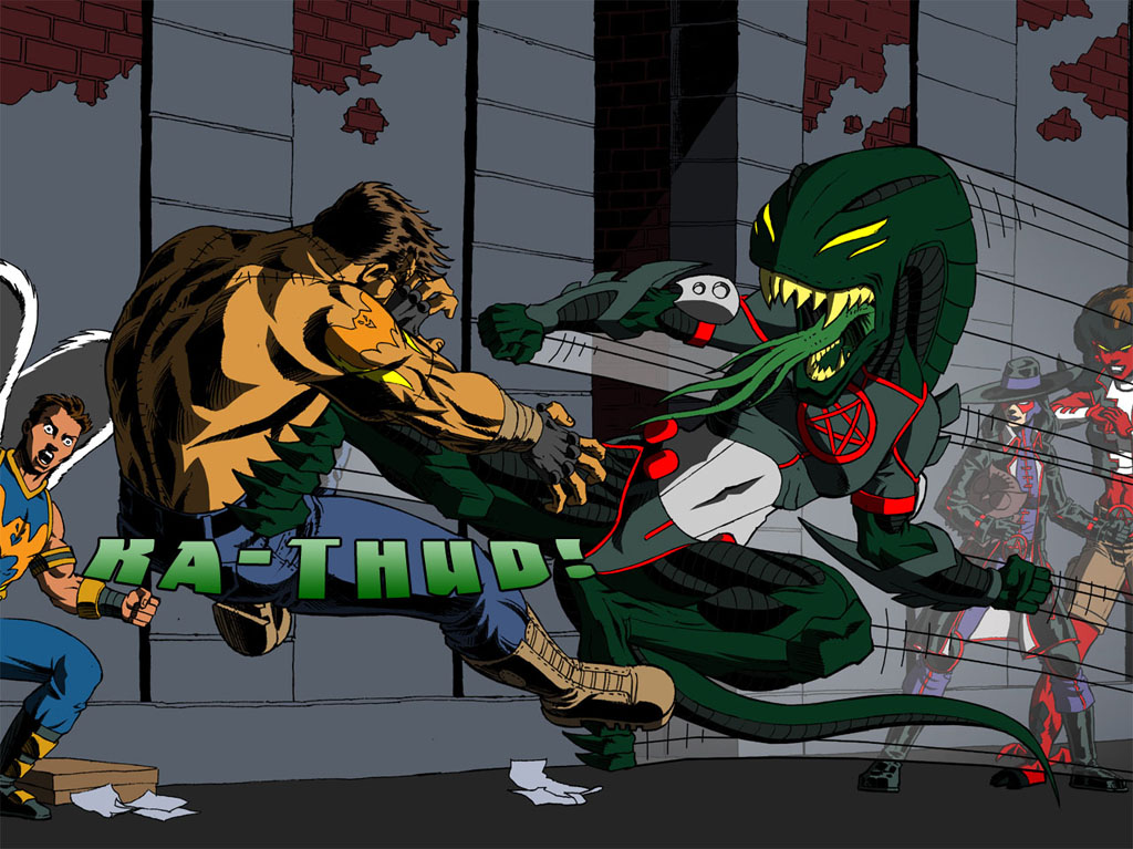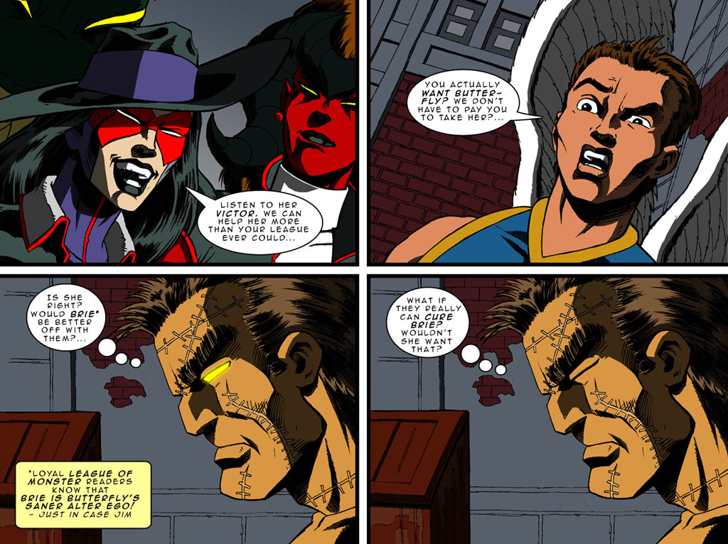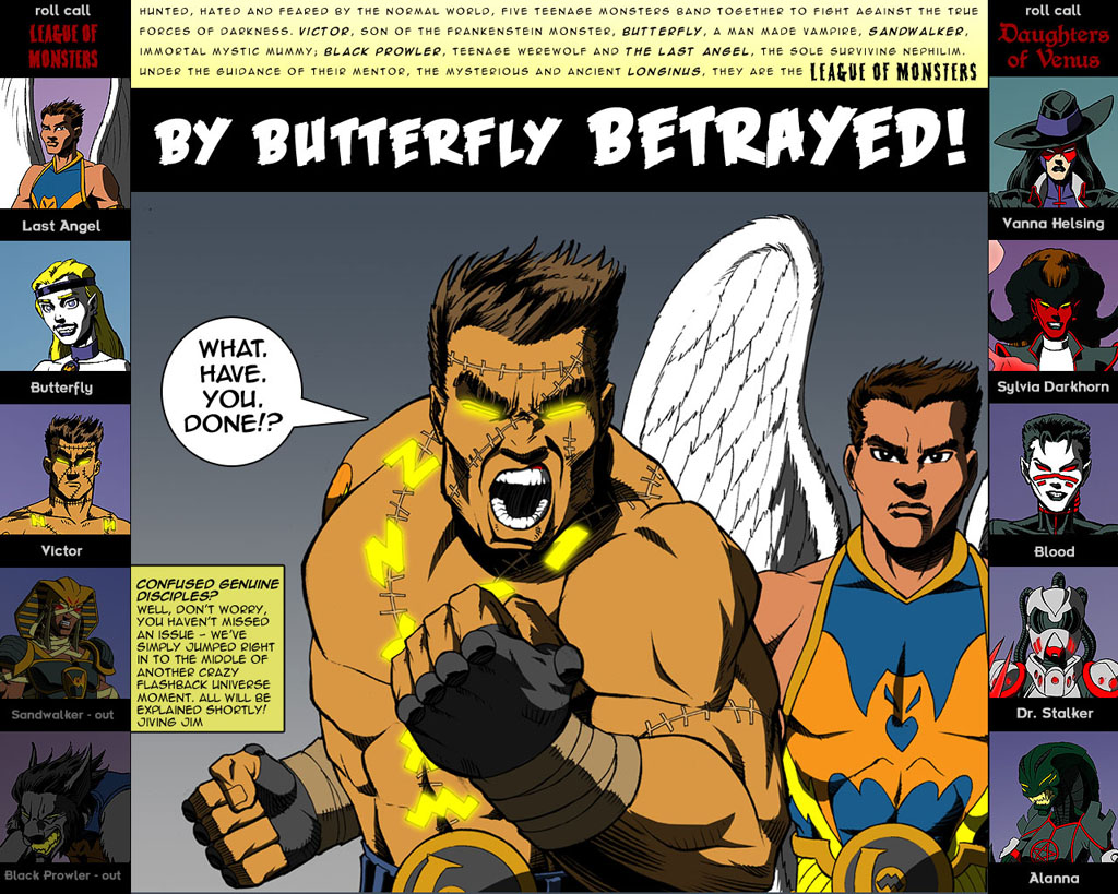 Blog | WebComics | Downloads | Chraracters | League of Monsters | STORY: Jim Shelley | ART: Pierre Villeneuve |